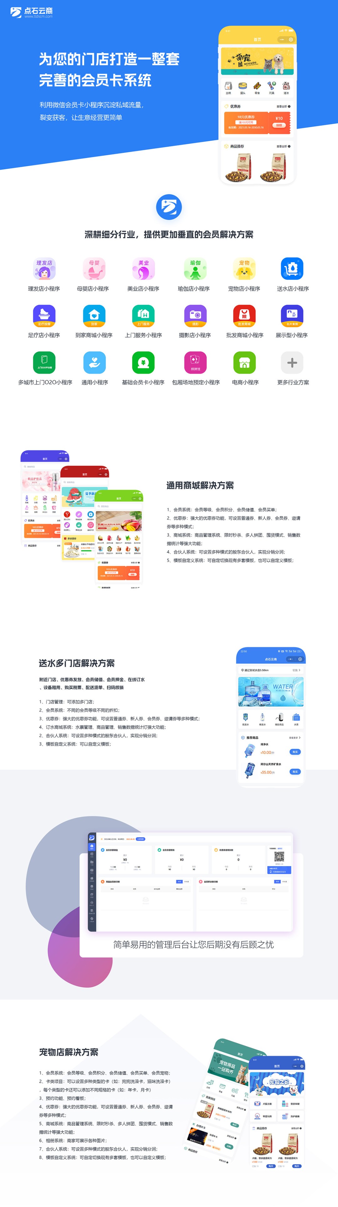 靓点:附近门店、优惠券发放、会员储值、会员押金、在线订水、设备租用、购买税票、配送派单、扫码核销